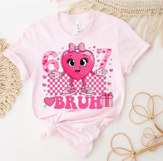 6•7 BRUH Kids Valentine Shirt – Trendy Heart Tee (Boys & Girls Styles)