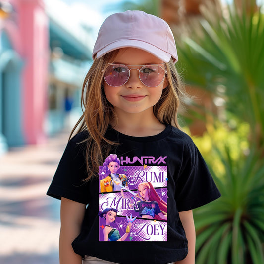 Huntrix Rumi Mira Zoey Graphic Tee – Kids Edition