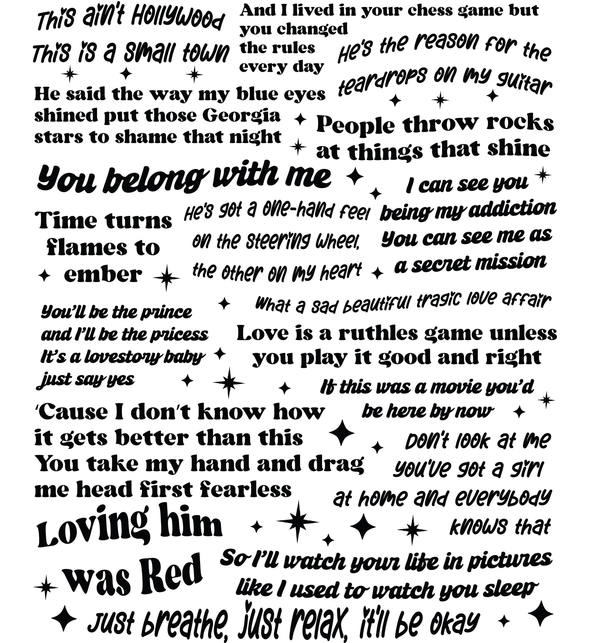 Celebrate Taylor Swift's first 4 eras lyrics with this fabulous sweatshirt. Iconic lyrics from Debut, Fearless, Speak Now and Red albums.