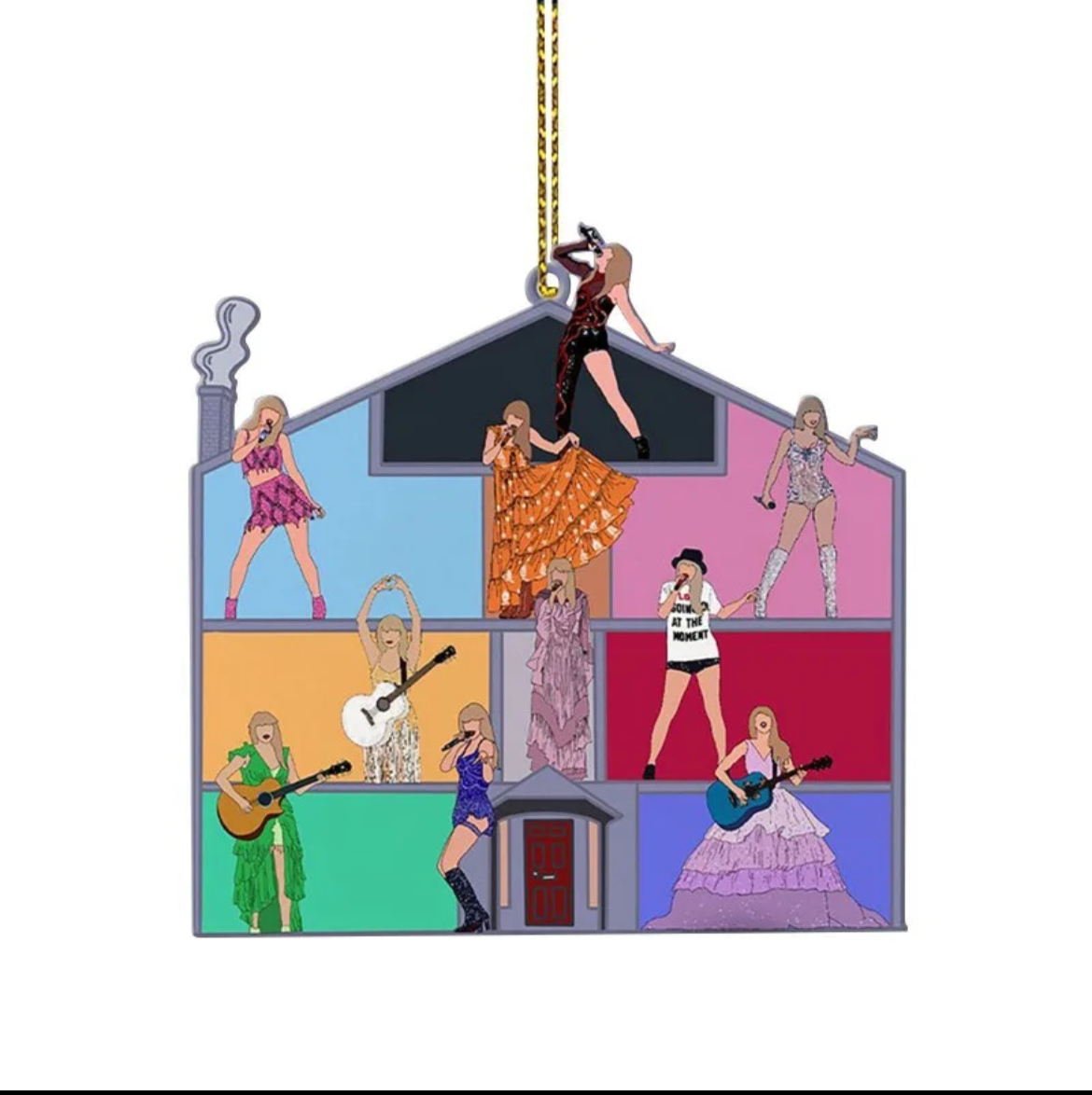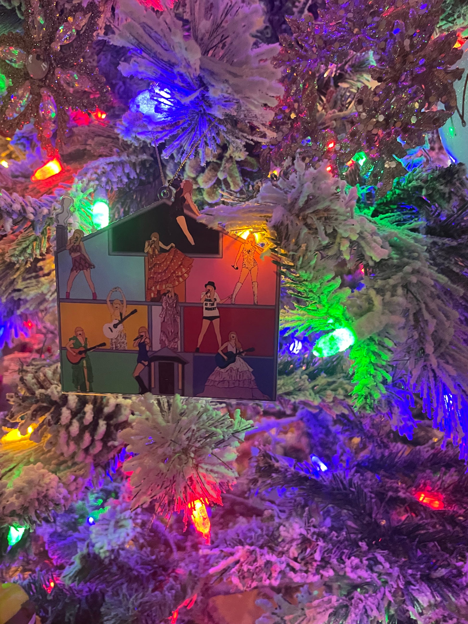 Lightweight Acrylic Ornament mixing Taylor Swifts Iconic Lover House and The Eras Tour. Perfect to add to your Swiftie Christmas Tree.